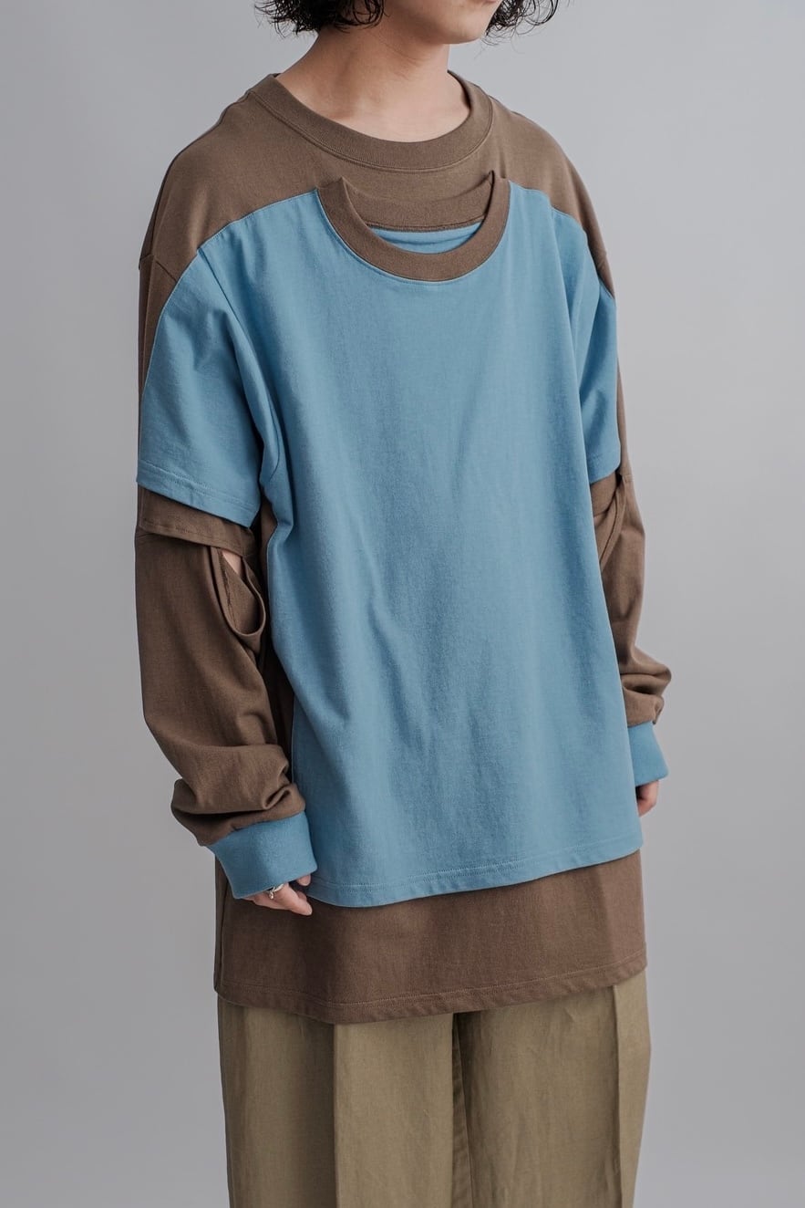 ロンTは袖にスリットを⼊れているので半袖としても着ていただけます。