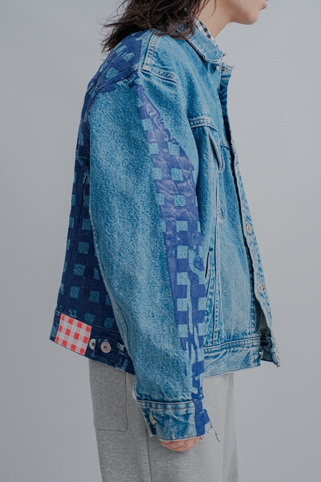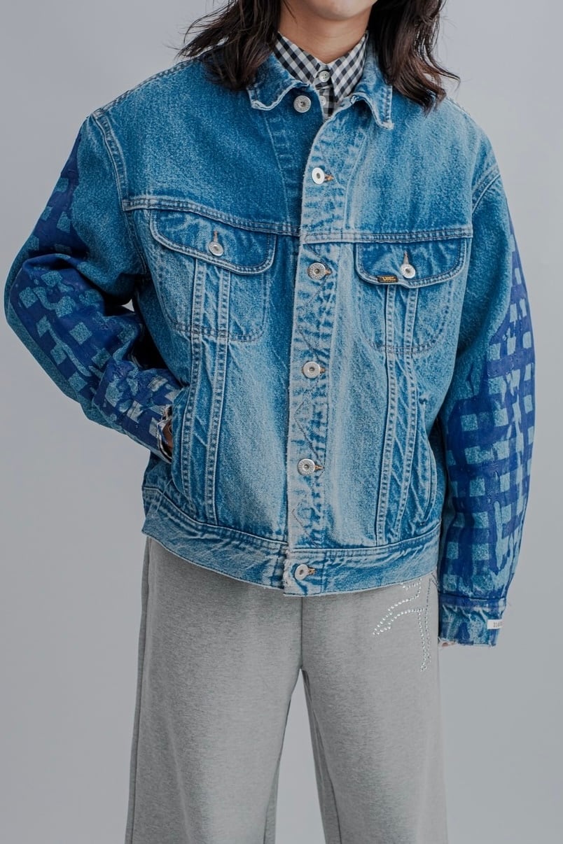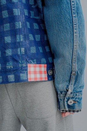 【TSTS】GINGHAM PRINT VINTAGE DENIM JACKET