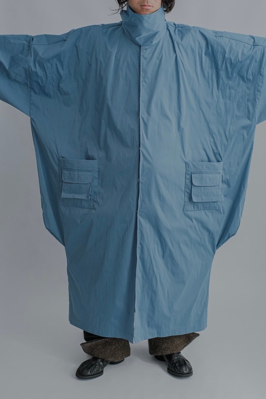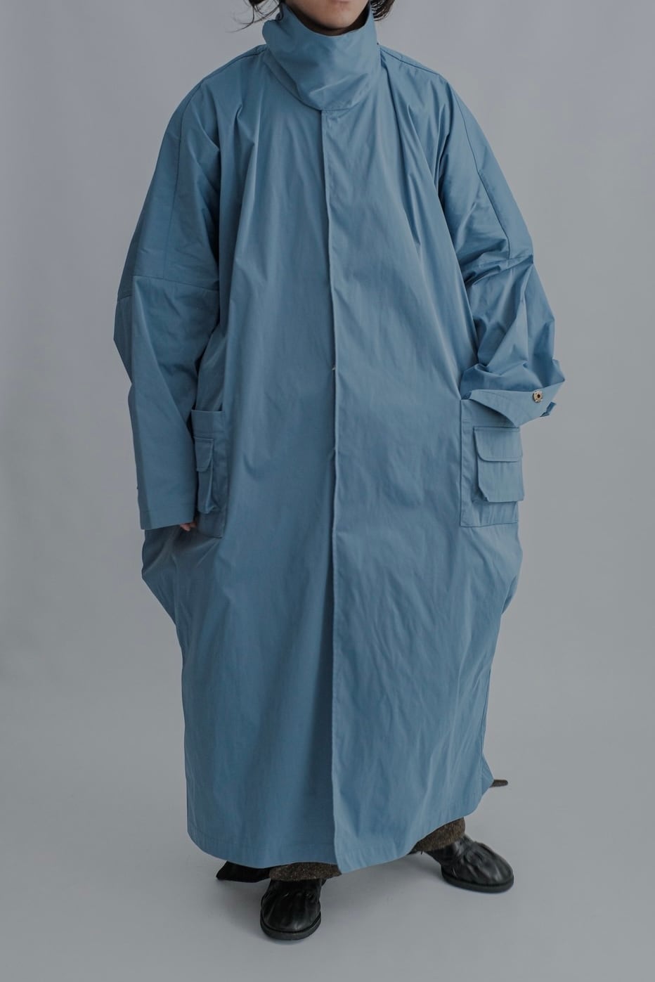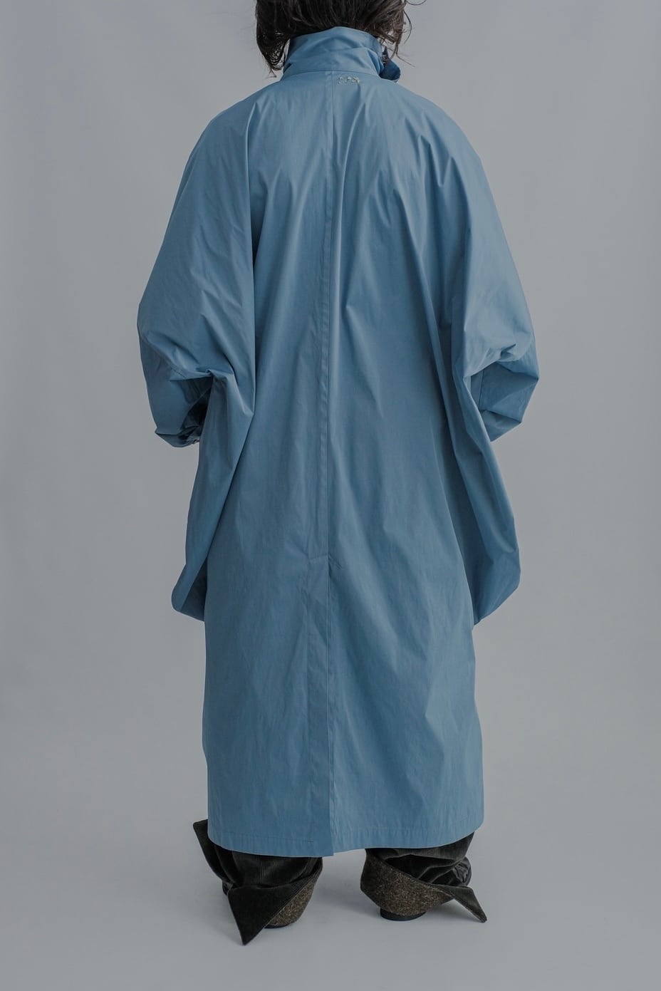 袖下が大きく楕円を描く独特の形で、ハイネックの襟が印象的です
