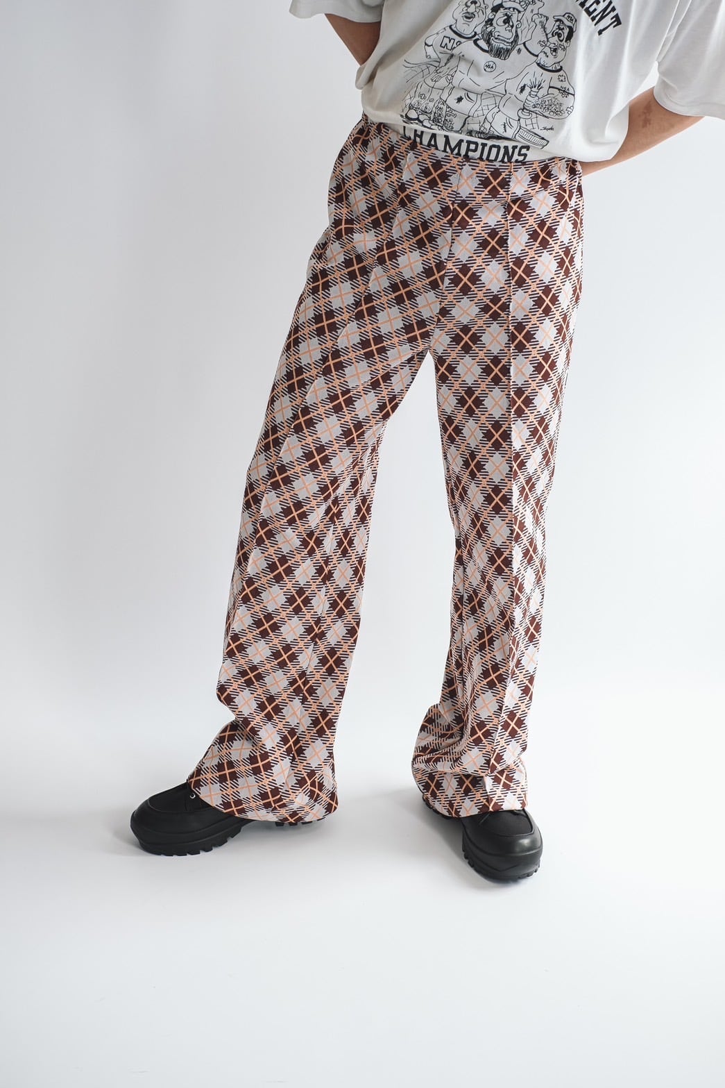 1980s check pattern easy pants